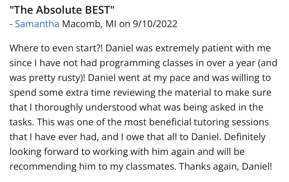 Our tutors break down abstract programming concepts into relatable examples you'll actually understand
