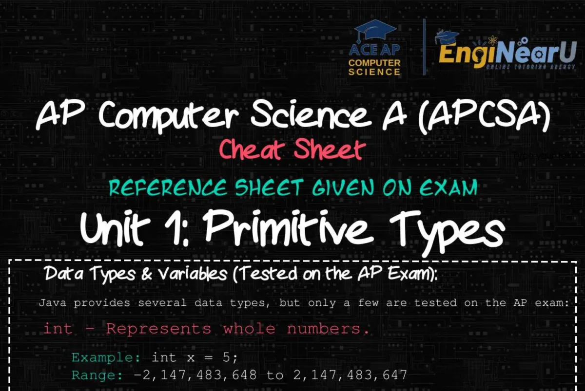 Our comprehensive AP CS A Review Sheet is more than just a typical study guide. It's a complete exam preparation system that has helped students increase their scores by an average of 30%. The resource includes Complete coverage of all Java concepts tested on the exam, FRQ questions Quick-reference "cheat sheets" for syntax and methods Students who use our review sheet consistently report feeling more confident and scoring higher than with other resources.