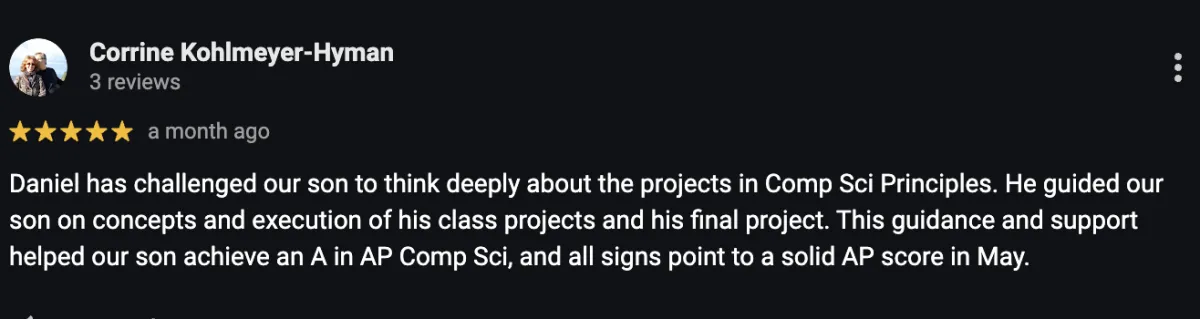 Schedule a Free call today and let's build a plan to help your teen ACE AP Computer Science