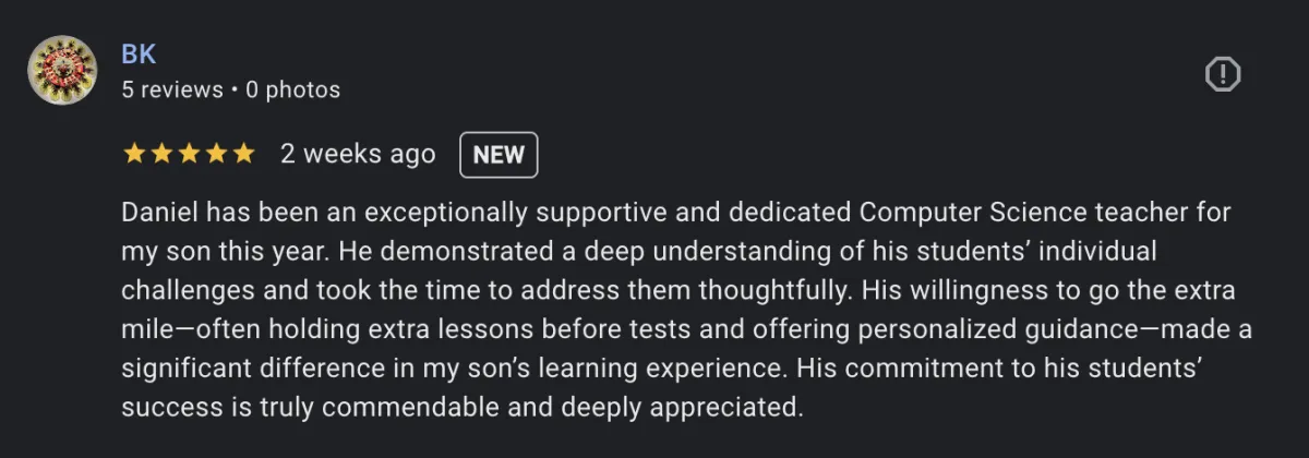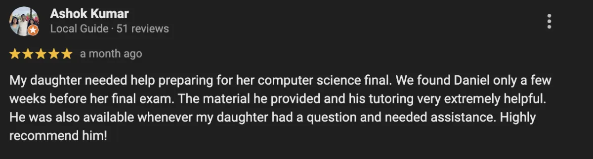 Most students report significant improvement in their understanding within 2-3 weeks of starting our program. For those struggling with specific concepts, our targeted approach often creates "breakthrough moments" even faster. Our methodology focuses on building a strong foundation first, then applying concepts through practical coding exercises. We've seen students go from failing practice exams to scoring 4s and 5s on the actual AP exam with consistent effort. Remember that computer science is cumulative. Once the foundational concepts click, you'll often experience rapid improvement across all areas.